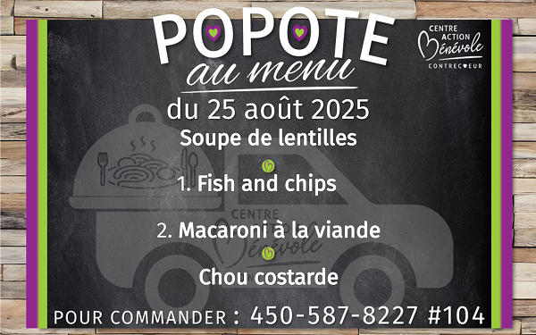 Date limite pour commander vos repas chauds: Le vendredi, 22 août 2025 11h30